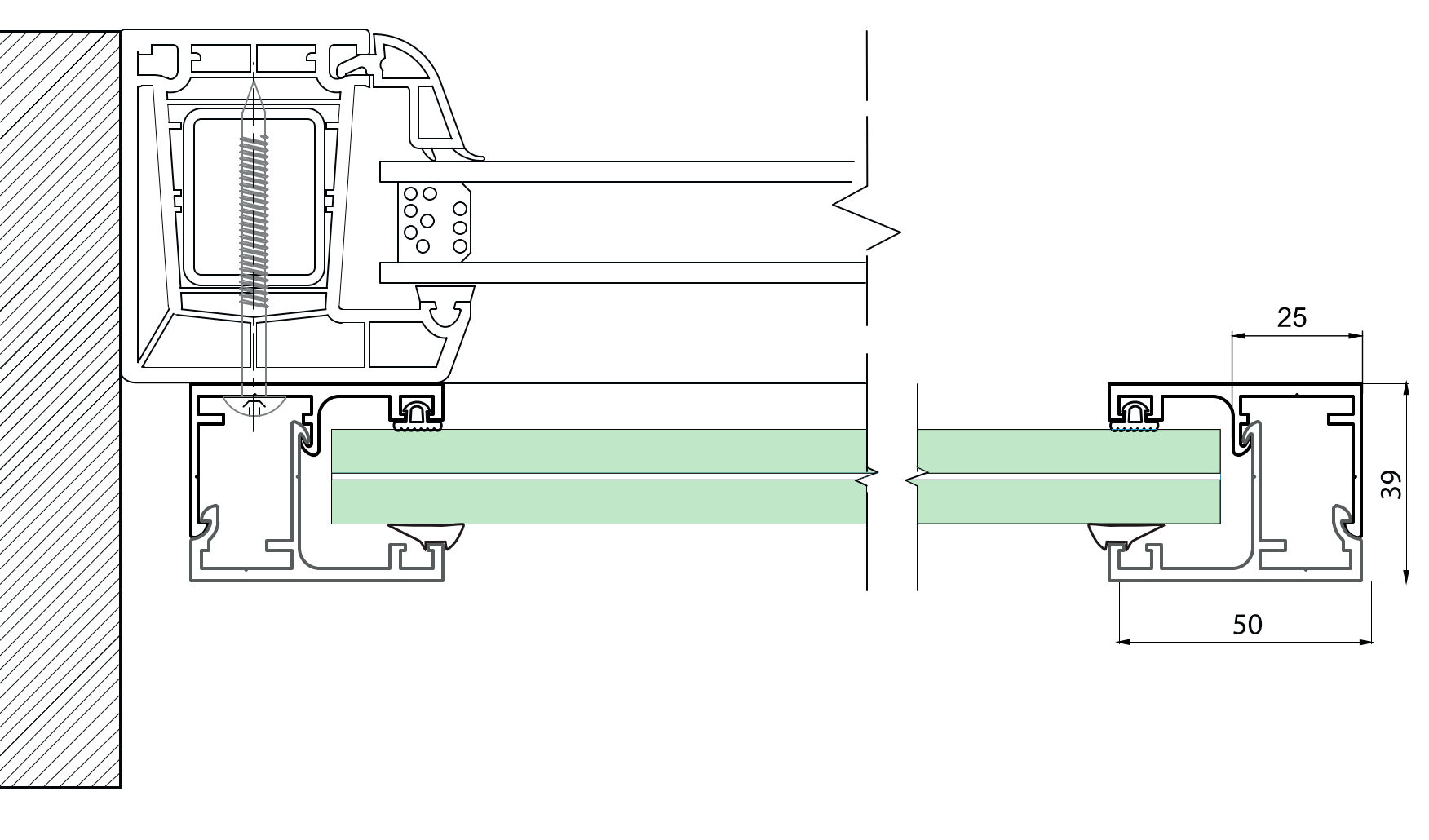Kluczową zaletą systemu jest brak konieczności wykonywania otworów w szkle co skraca czas realizacji, upraszcza montaż i eliminuje ryzyko uszkodzenia tafli. Profil można skrócić od strony górnej w razie potrzeby, a w przypadku niestandardowych kolorów malowany proszkowo na dowolny odcień z palety RAL.