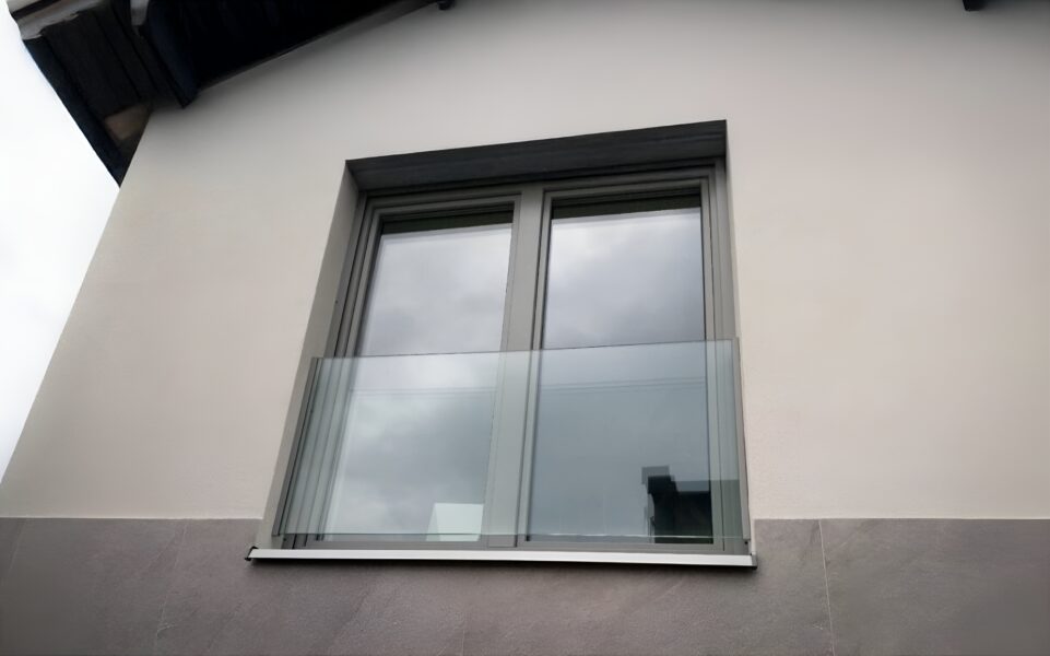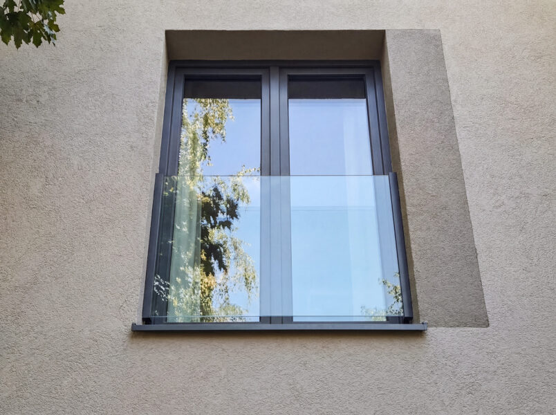Balustrada okienna szklana z profilem naokiennym to system mocowania balkonu francuskiego przeznaczony do montażu bezpośrednio do ramy okiennej bez ingerencji w elewację, warstwę ocieplenia ani szkło. Profile aluminiowe mocowane są do ościeżnicy okiennej po obu stronach, a tafla szkła wsuwana jest w profil i uszczelniana bez żadnych otworów montażowych. Idealne rozwiązanie dla budynków z gotową elewacją oraz wszędzie tam, gdzie zależy nam na szybkim i czystym montażu.